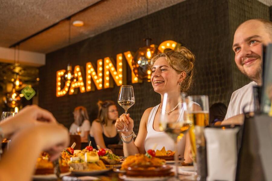 Je kunt zelf kiezen wat je wilt eten. Pinchos (rijkelijk belegde broodjes) of andere tapas gerechtjes. Elk gerecht kost slechts €4,- (sommige hebben € 1,- meerprijs) en voor de nagerechtjes mag je voor dit bedrag er zelfs 2 uitkiezen.
